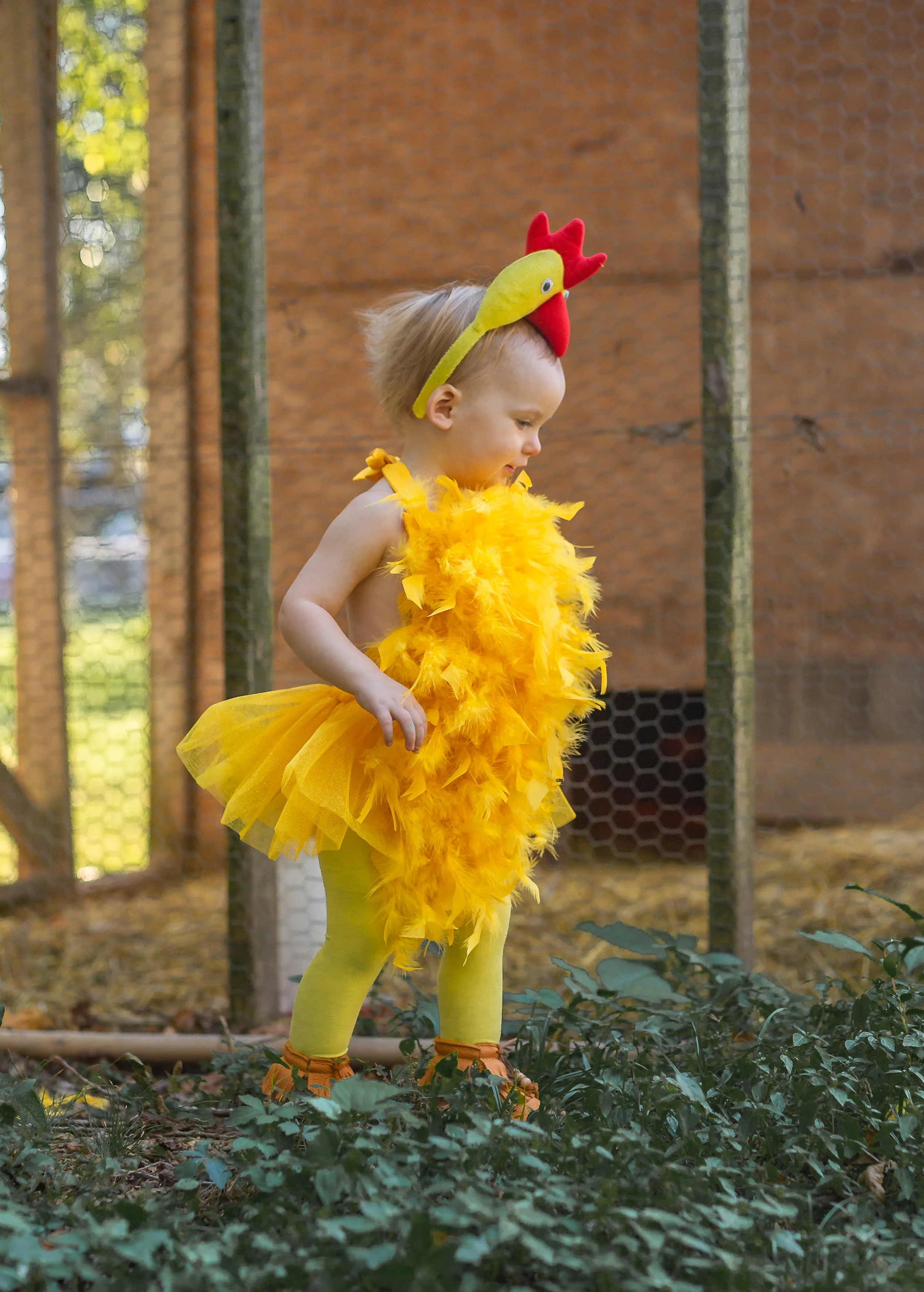 YELLOW Faux Feather Chicken inspired Romper