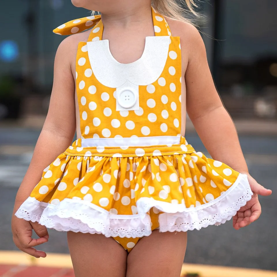 Our rompers fit true to size and feature a halter-style top with adjustable neck ties for a customizable fit. To ensure comfort, all rompers are fully lined to prevent any irritation or scratching.